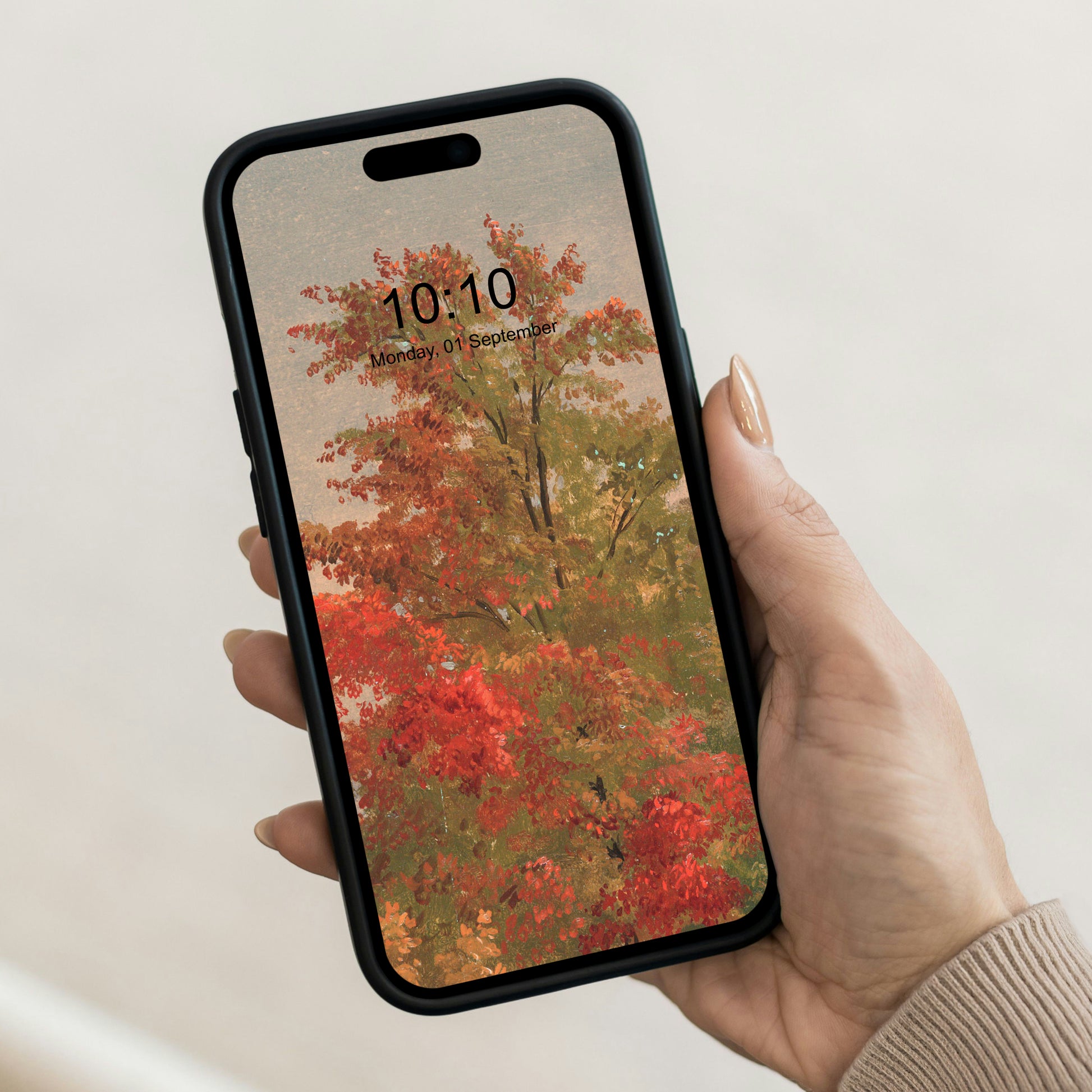 Con sus cálidos tonos dorados, rojizos y ocres, esta pintura captura la serenidad y profundidad de los paisajes otoñales del siglo XIX. Perfectamente adaptada en formato vertical (1080 × 1920 px), esta imagen convertirá tu pantalla en una auténtica ventana a la naturaleza.