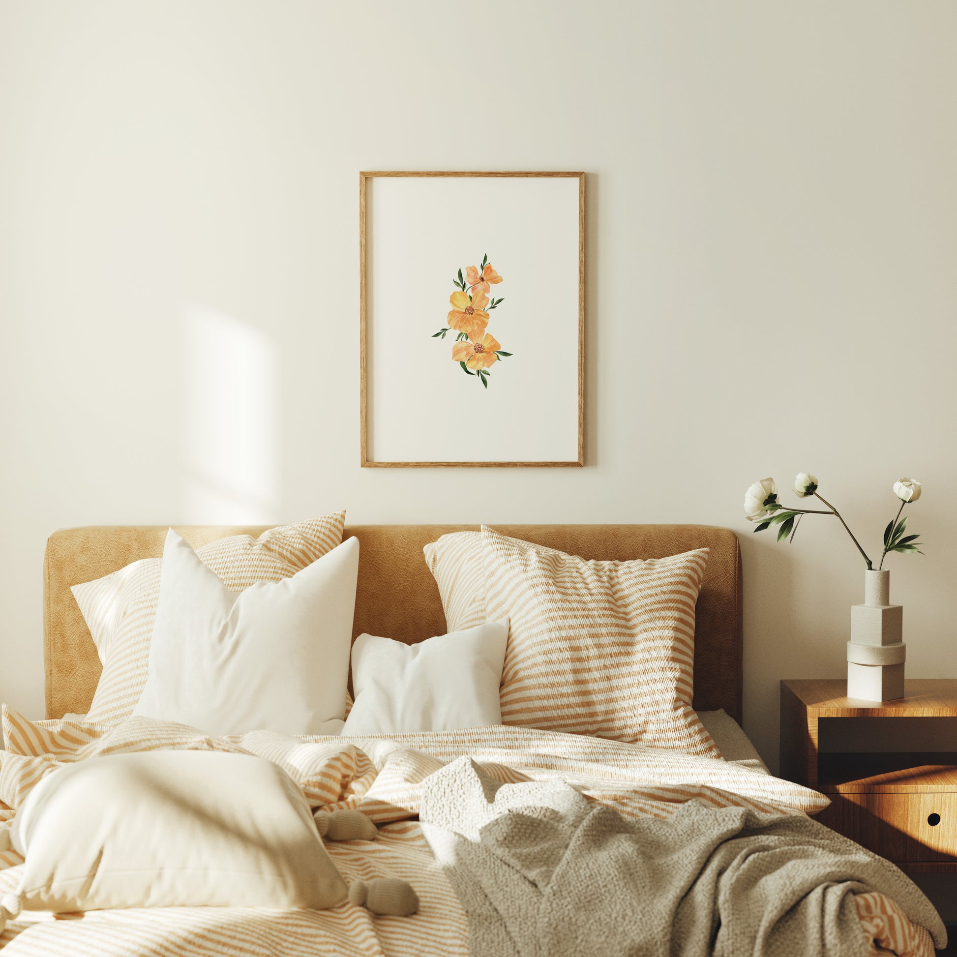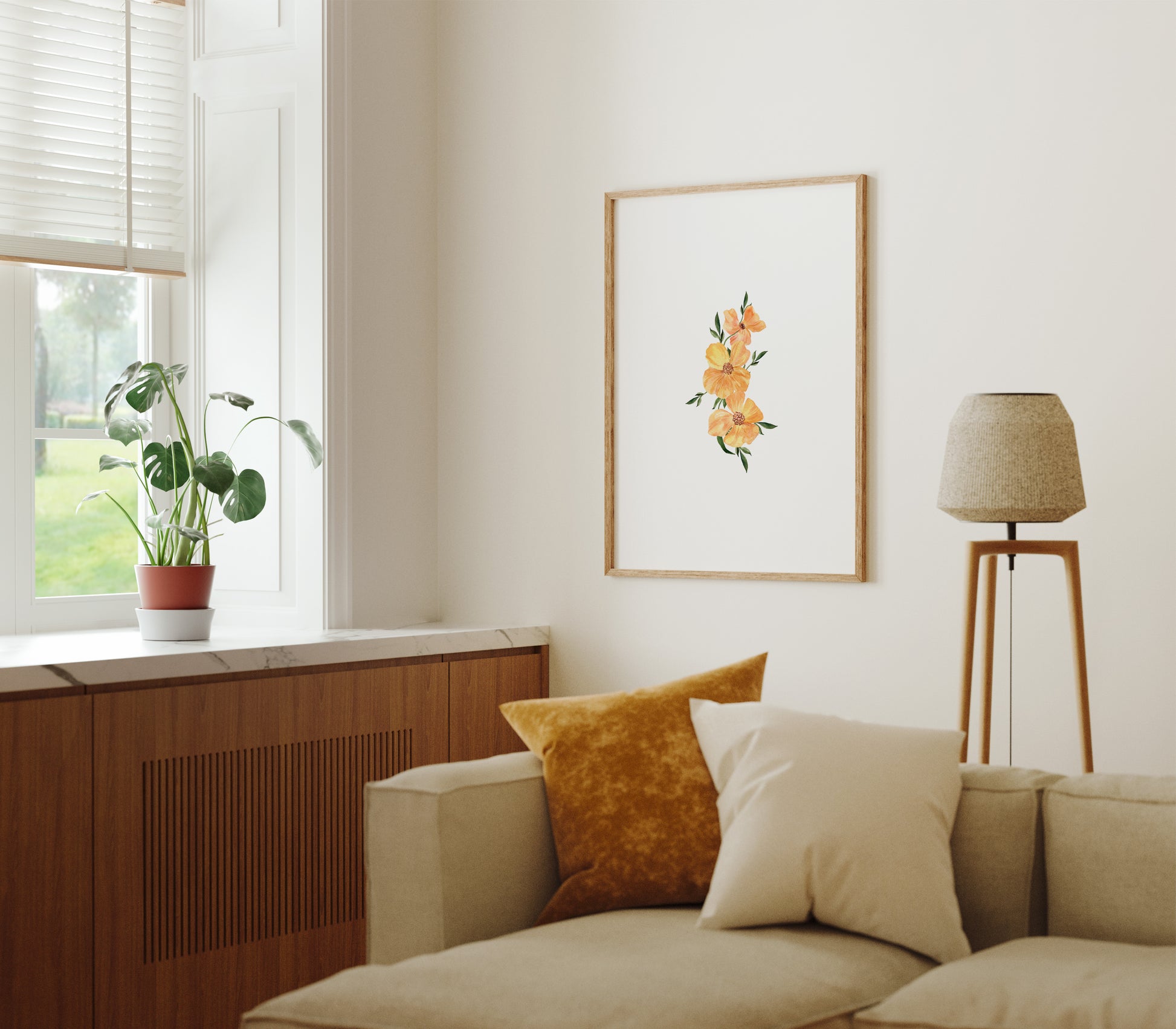 Llena de color y vida tus espacios con esta ilustración, una lámina que captura la belleza natural con un estilo fresco, artístico y elegante. Sus tonos cálidos en naranja y verde transmiten energía positiva, alegría y vitalidad, convirtiéndola en la pieza perfecta para decorar tu hogar o regalar a alguien especial.