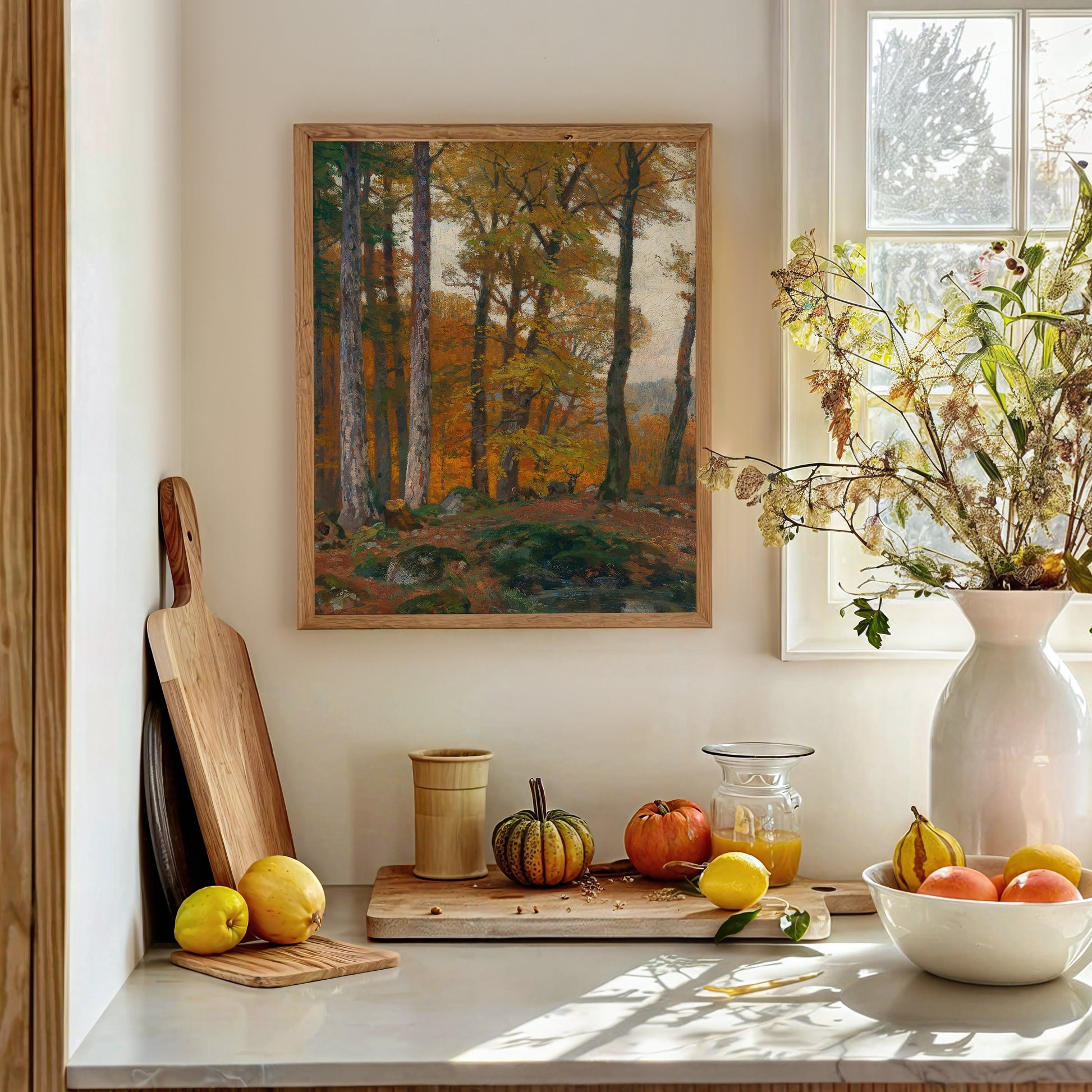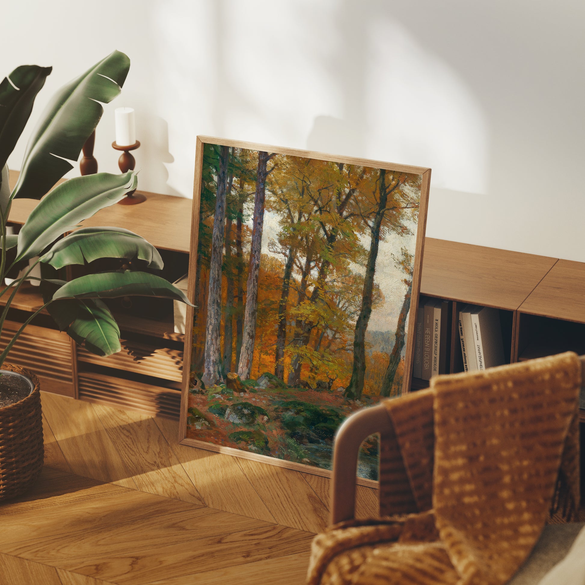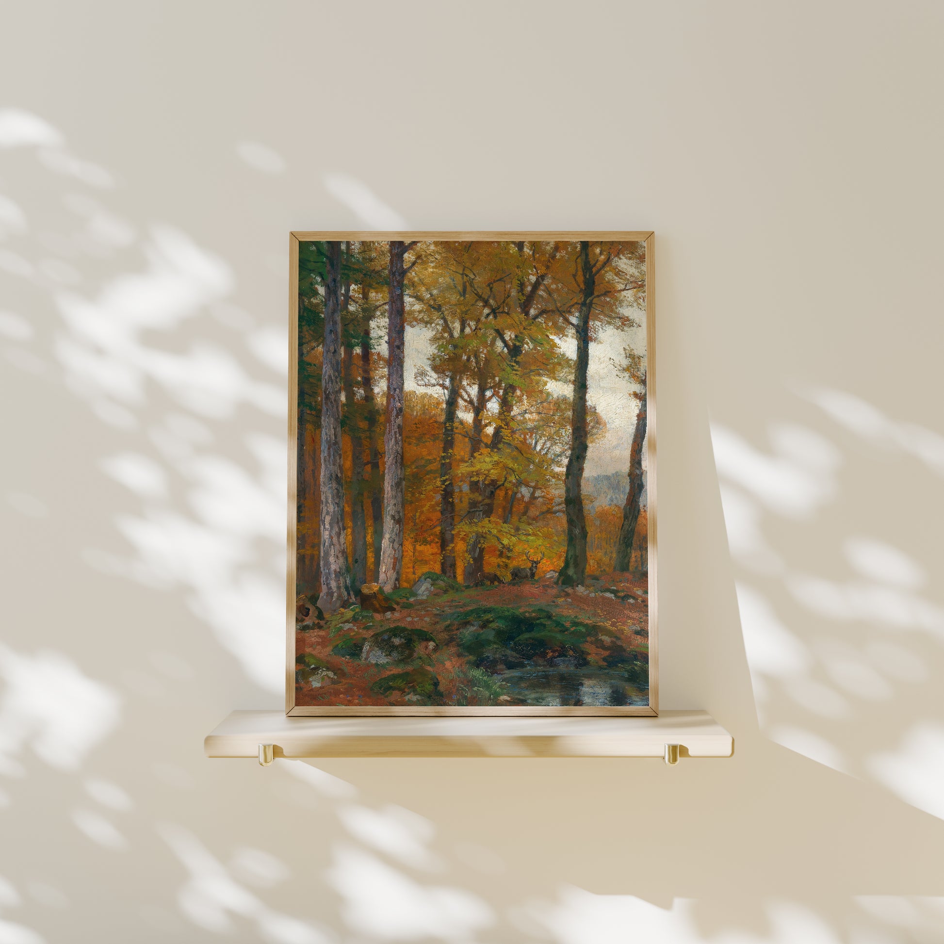 Transforma tu espacio con la belleza atemporal de esta lamina de la pintura “A Forest Glade with Stags in Autumn” del artista austriaco Hugo Darnaut. Esta obra maestra captura una tranquila escena otoñal en el bosque, donde ciervos reposan entre claros dorados y árboles cubiertos de tonos cálidos, evocando calma, naturaleza y elegancia clásica.