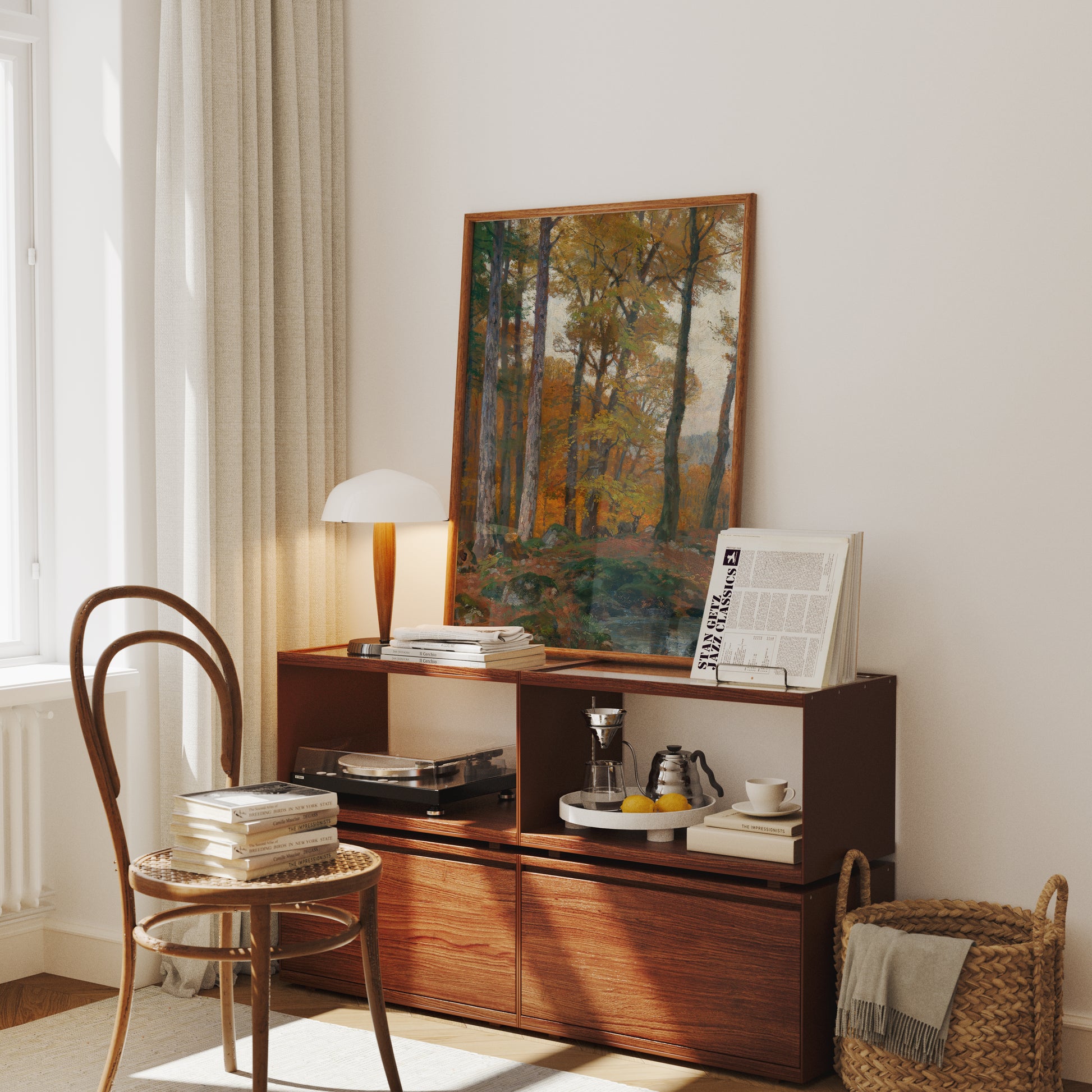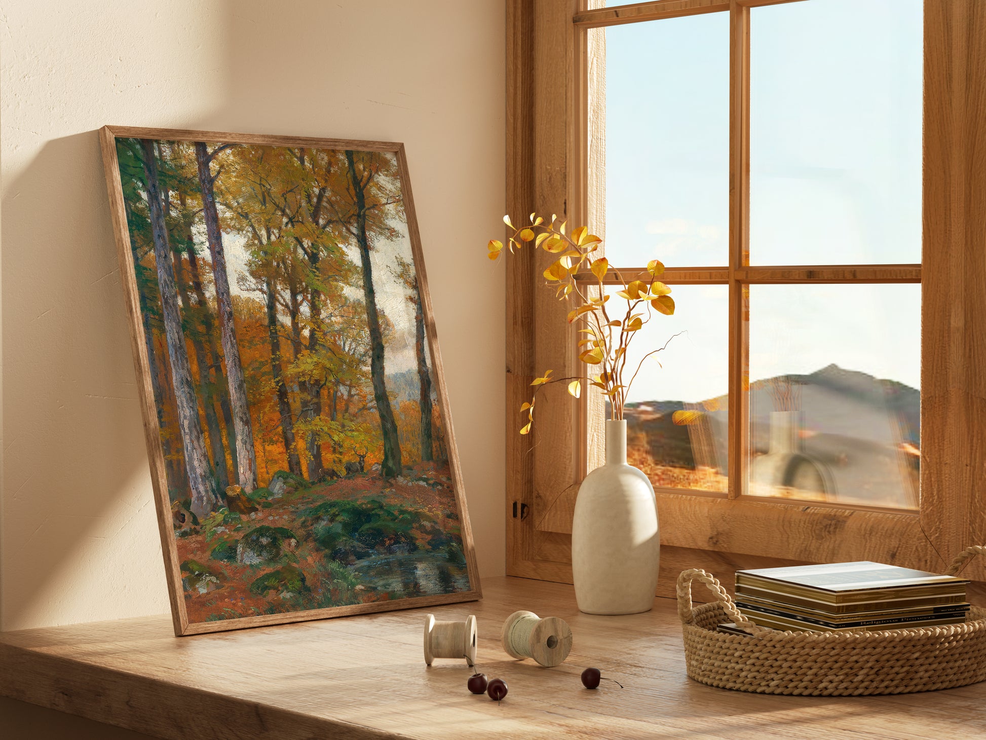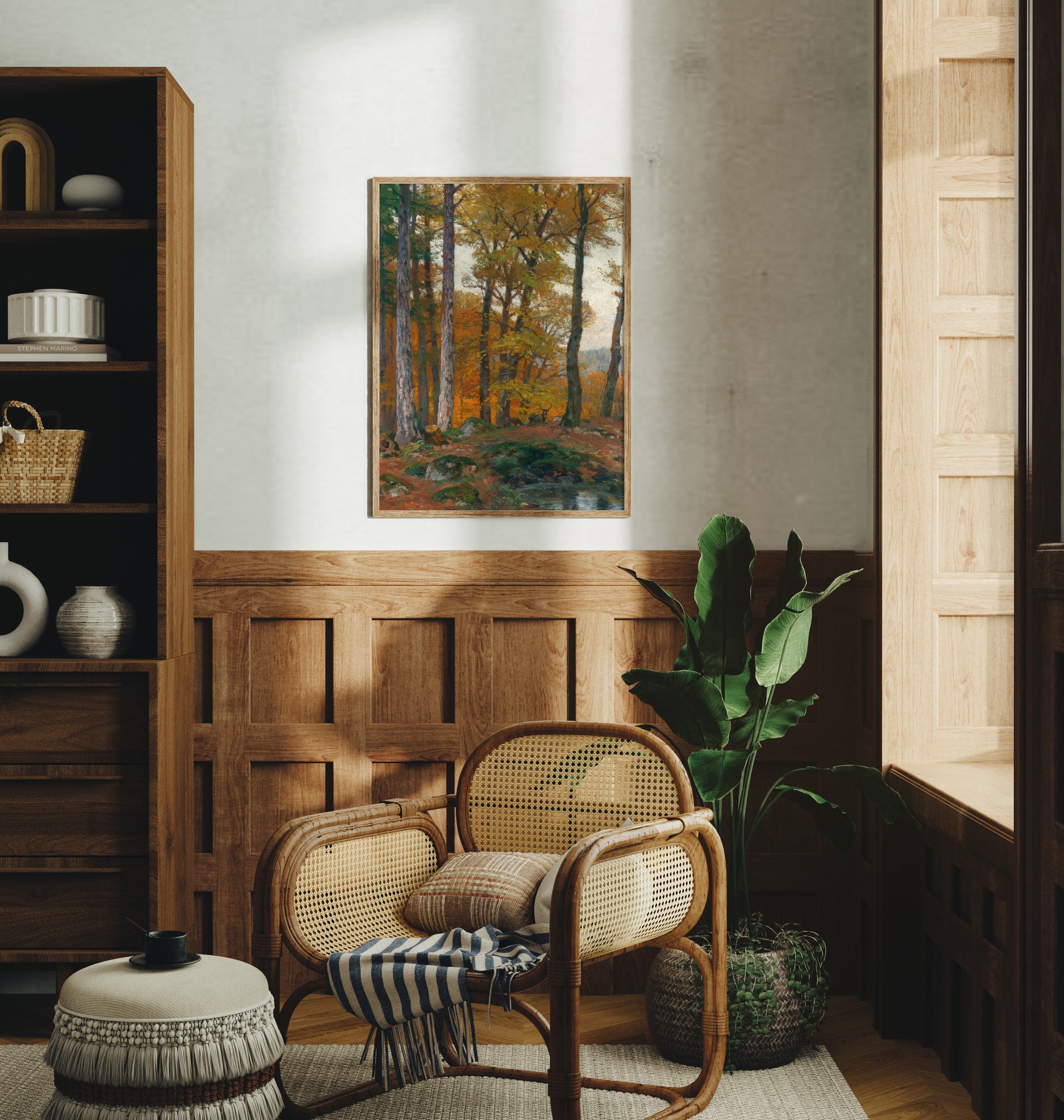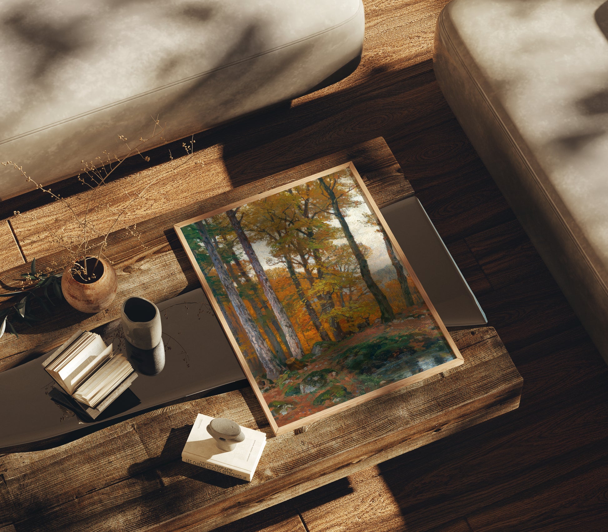 Transforma tu espacio con la belleza atemporal de esta lamina de la pintura “A Forest Glade with Stags in Autumn” del artista austriaco Hugo Darnaut. Esta obra maestra captura una tranquila escena otoñal en el bosque, donde ciervos reposan entre claros dorados y árboles cubiertos de tonos cálidos, evocando calma, naturaleza y elegancia clásica.