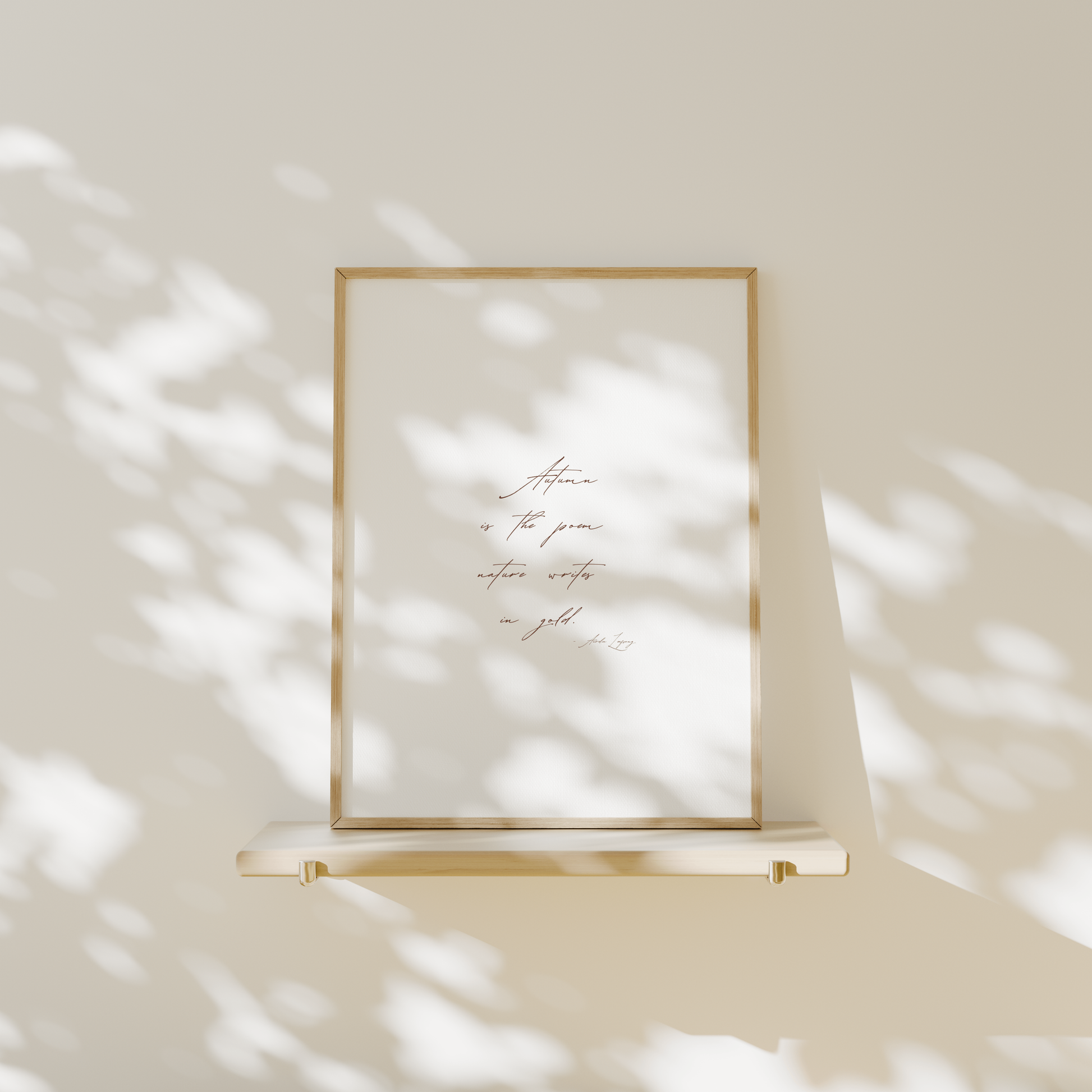 Transforma tus paredes con este delicado set de 5 láminas decorativas, que combina la belleza de paisajes clásicos de otoño con la poesía de esta estación tan evocadora. El conjunto incluye: