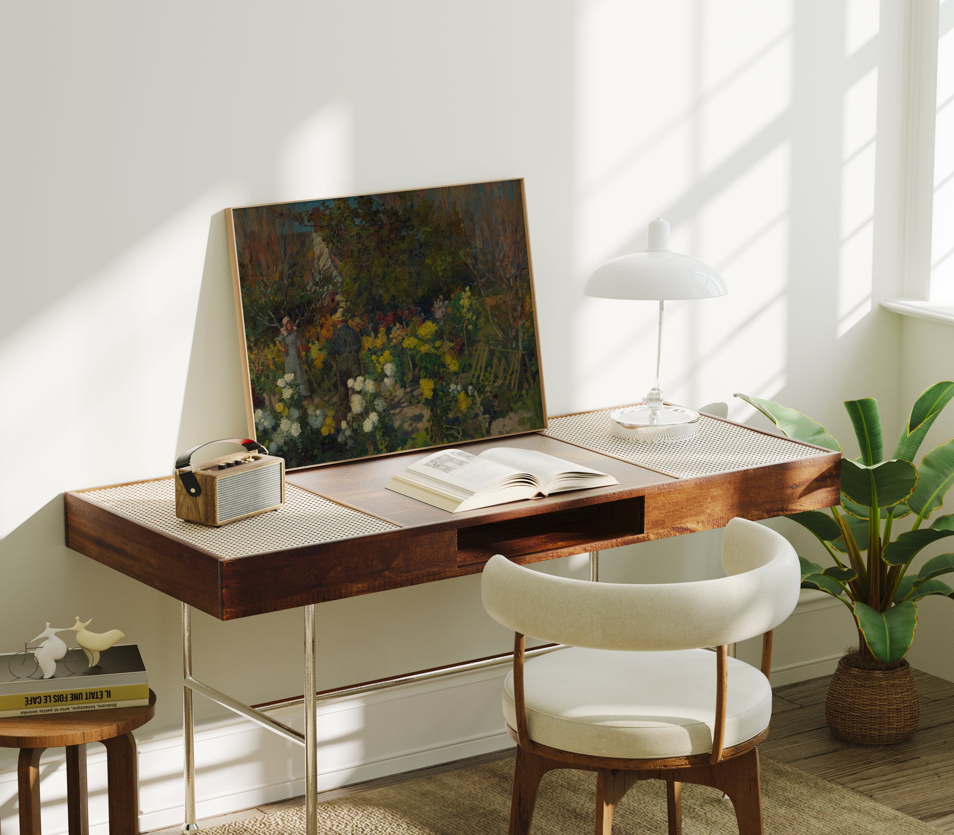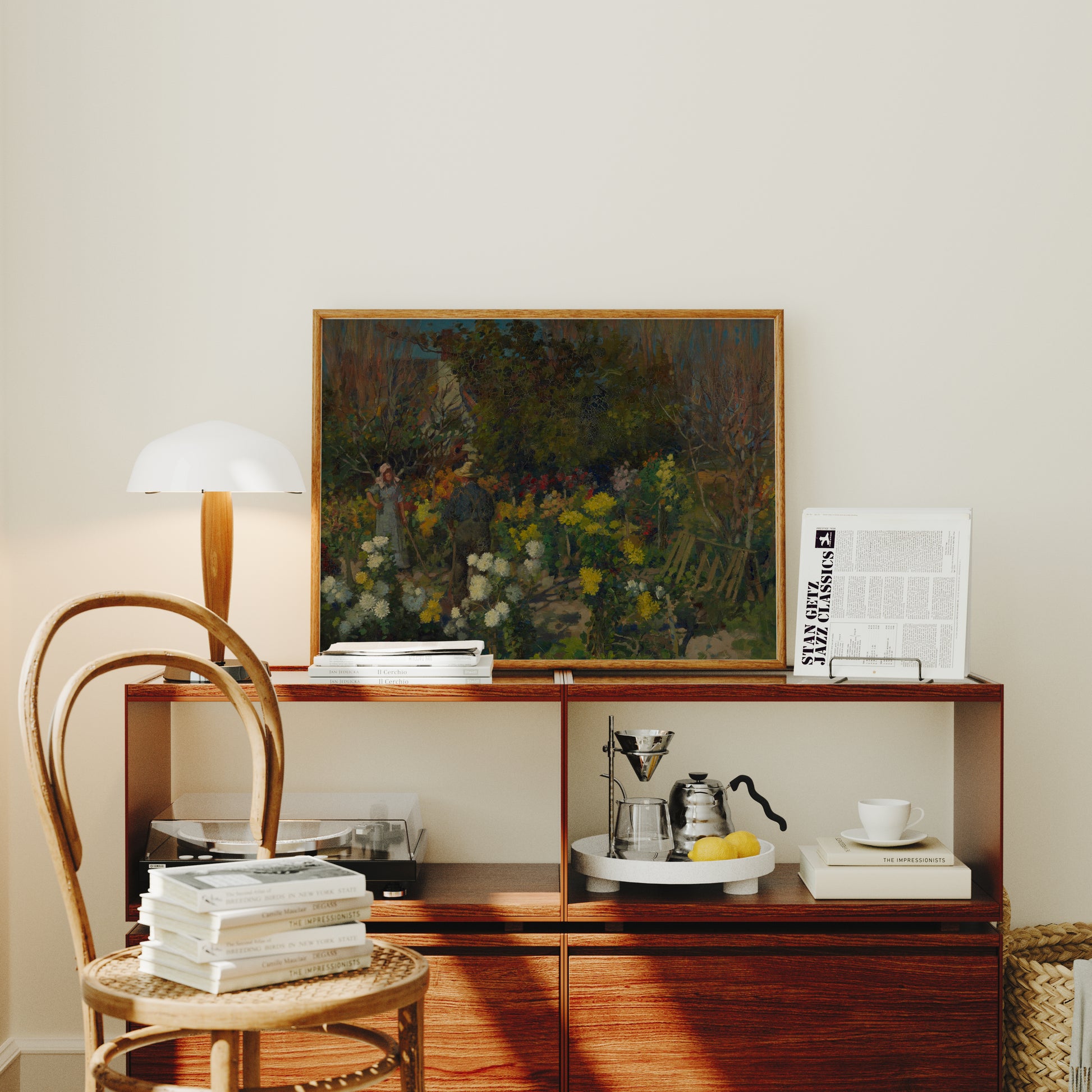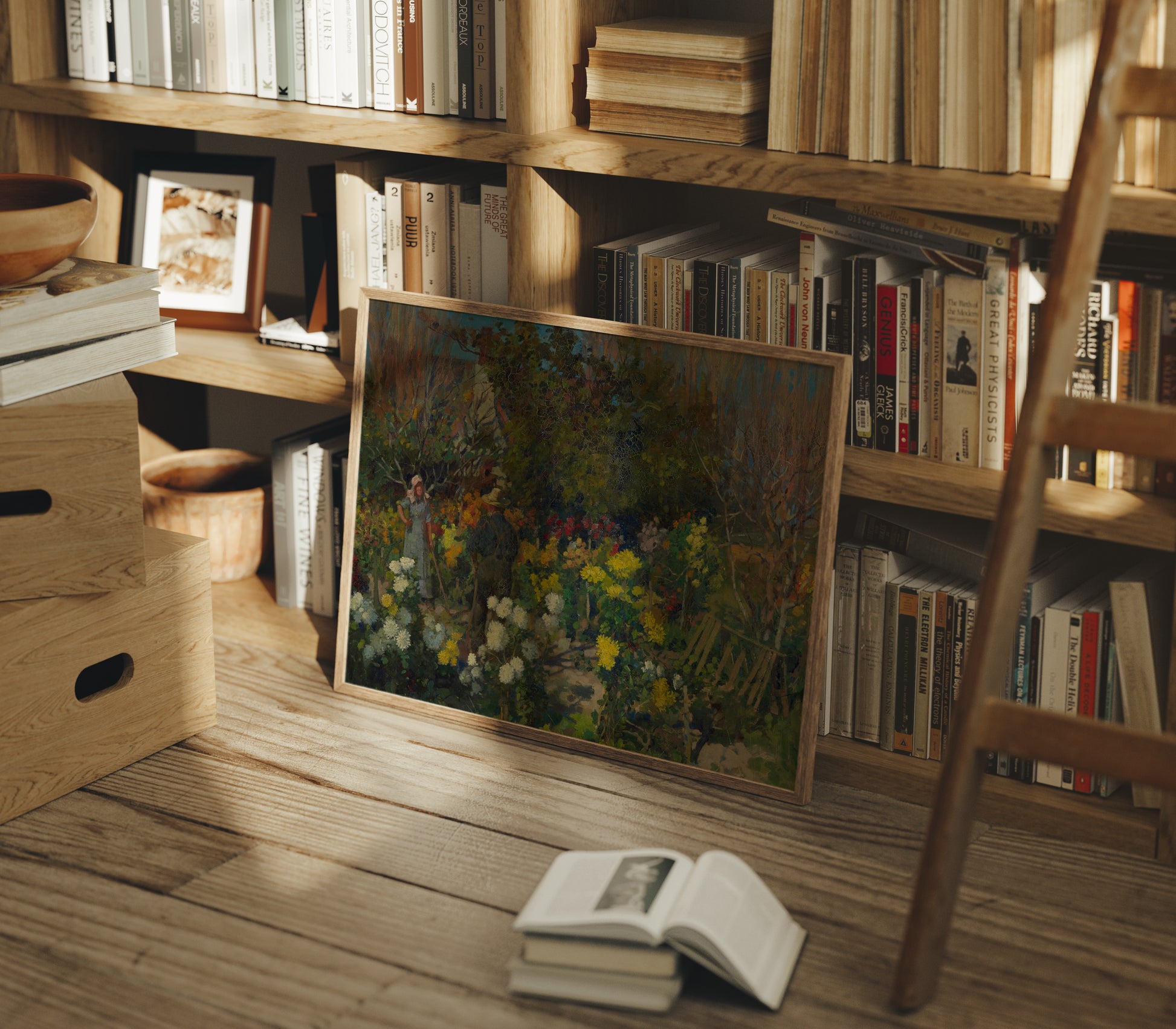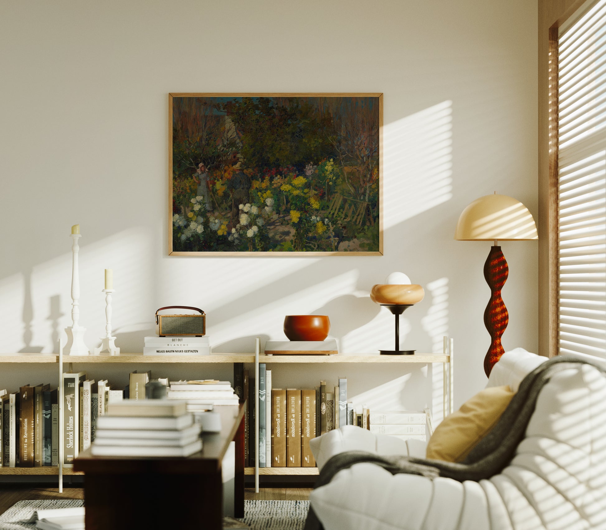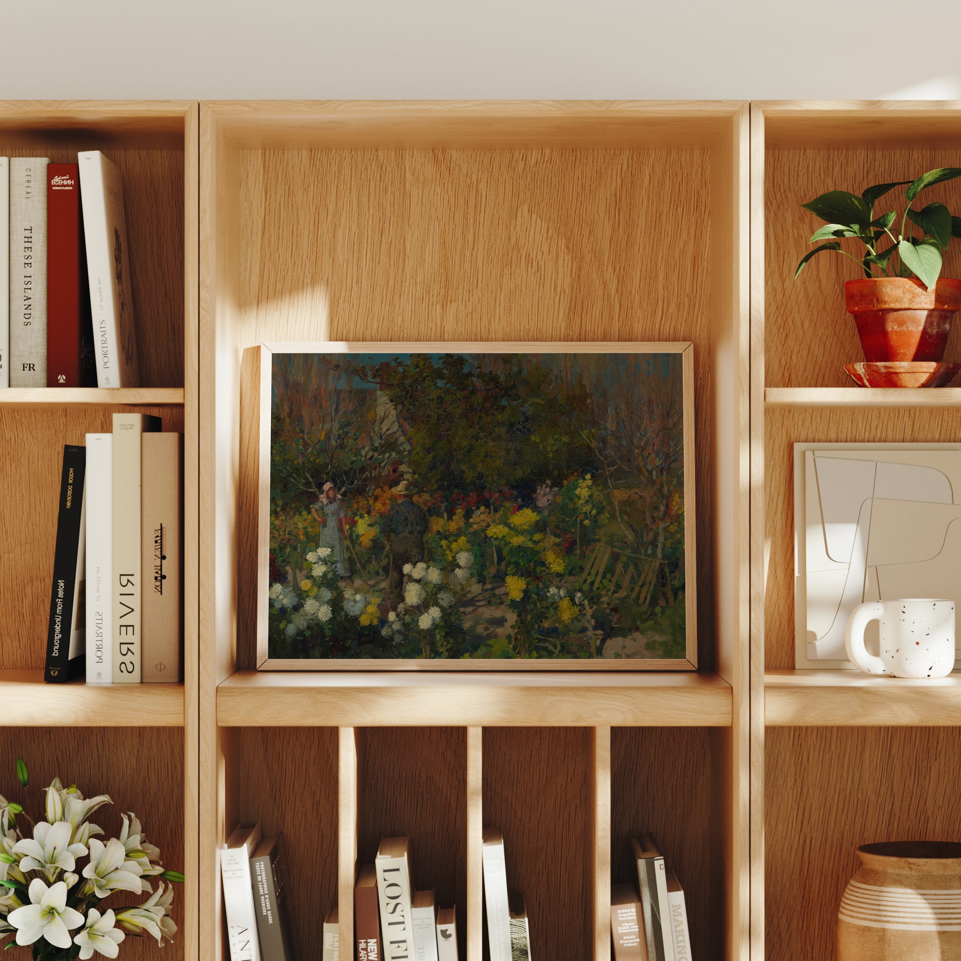 Lleva la belleza del otoño a tu hogar con esta lámina de “Autumn Blooms”, una delicada obra del pintor escocés James Nairn. Esta pintura captura la calidez de la estación a través de un jardín de flores otoñales, plasmado con suaves pinceladas impresionistas y una paleta de colores naturales y acogedores.